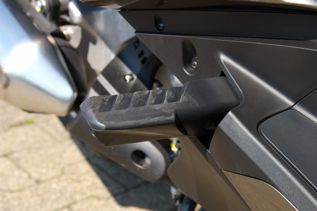 Wenn man sich mit diesen Nachteilen arrangieren kann, dann findet man auch einige Schmankerl, wie die ausklappbaren Fußrasten ganz gut: